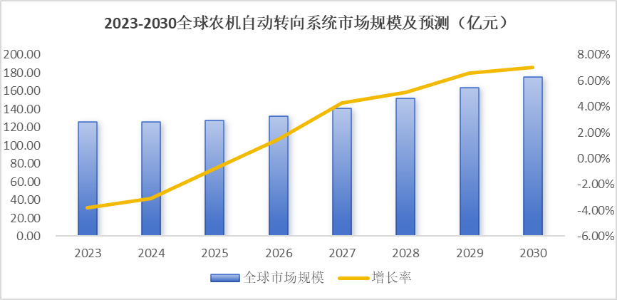 2024年全球农机自动转向系统的市场规模达到126亿元未来预计以575%的年复合增长率增长至2030年的175亿元