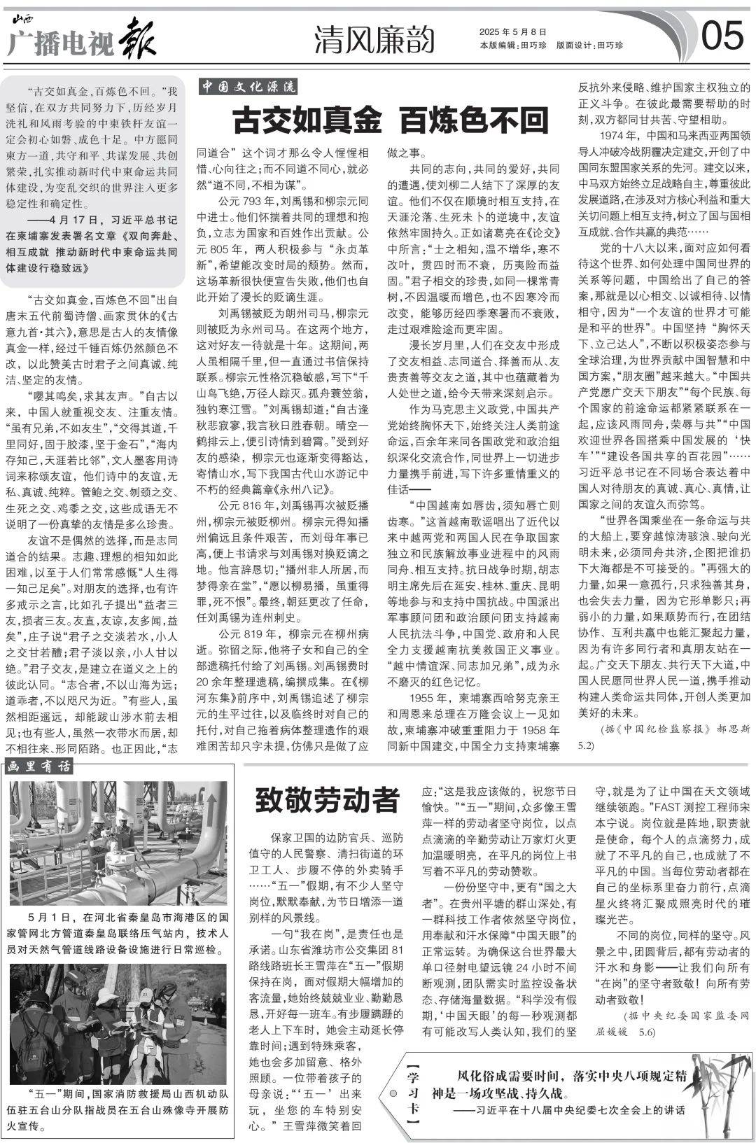 一句“我在岗”,是责任也是承诺。山东省潍坊市公交集团81路线路班长王雪萍在“五一”假期保持在岗,面对假期大幅增加的客流量,她始终兢兢业业、勤勤恳恳,开好每一班车。有步履蹒跚的老人上下车时,她会主动延长停靠时间;遇到特殊乘客,她也会多加留意、格外照顾。一位带着孩子的母亲说:“‘五一’出来玩,坐您的车特别安心。”王雪萍微笑着回应:“这是我应该做的,祝您节日愉快。”“五一”期间,众多像王雪萍一样的劳动者坚守岗位,以点点滴滴的辛勤劳动让万家灯火更加温暖明亮,在平凡的岗位上书写着不平凡的劳动赞歌。一份份坚守中,更有“国之大者”。在贵州平塘的群山深处,有一群科技工作者依然坚守岗位,用奉献和汗水保障“中国天眼”的正常运转。为确保这台世界最大单口径射电望远镜24小时不间断观测,团队需实时监控设备状态、存储海量数据。“科学没有假期,‘中国天眼’的每一秒观测都有可能改写人类认知,我们的坚守,就是为了让中国在天文领域继续领跑。”FAST测控工程师宋本宁说。岗位就是阵地,职责就是使命,每个人的点滴努力,成就了不平凡的自己,也成就了不平凡的中国。当每位劳动者都在自己的坐标系里奋力前行,点滴星火终将汇聚成照亮时代的璀璨光芒。